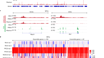 For ChIPseq, cells were harvested and resuspended in PBS containing 1% formaldehyde for fixation and quenched with 125 mM glycine. Cells were lysed and sonicated using the Covaris Sonicator, to generate 250 bp DNA fragments. Chromatin was incubated overnight at 4 °C with the antibodies (H3K27me3 (Cell Signalling) and H3 total (Abcam)) and recovered the day after using Dynabeads Protein G (Life Technologies). Immunocomplexes were eluted, de-cross-linked and purified using Qiaquick PCR Columns (Qiagen) according to the manufacturer’s instructions. DNA libraries were prepared according to ChIPseq Sample Preparation Guide (Illumina) and sequenced on an Illumina GA-II or HiSeq 2000 platform. Validation of ChIPseq results has been performed through qPCR analysis: 5 ng DNA have been used for each reaction. FAST SYBR green master mix from Life Technologies and 10 μM primer pairs have been used. The qPCR reactions have been performed on an Applied Biosystems 7500 Real-Time PCR machine following the standard amplification protocol. Primer lists for qRT–PCR and ChIP–qPCR are provided in Supplementary Tables 1 and 3. A detailed description of computational analysis is available as Supplementary Methods. Gene lists from ChIPseq and RNAseq analysis are available as Supplementary Data 1. IPA analyses are available as Supplementary Data 2. ChIPseq and RNAseq data have been deposited in the GEO database (GSE76292).