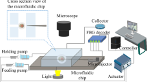 Following injection, the ZF larvae were moved to a Petri dish containing a tricaine solution. The concentration of tricaine was between 0.1 and 0.4 mg ml−1 in salt water18 (depending on how slow blood flow was desired for the experiment).