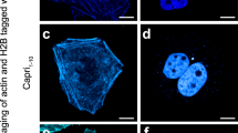 Mouse monoclonal antibodies used were anti-GFP ([1:100] Sigma-Aldrich, G6539), acetylated tubulin ([1:1,000] Sigma-Aldrich, T7451) and anti-histone H2B ([1:50] Abcam, ab52484) antibodies. Rabbit polyclonal antibodies used were anti-γ-tubulin ([1:1,000] Sigma-Aldrich, T5192), anti-lamin A/C ([1:20] Santa Cruz Biotechnology, H110), anti-cAMP protein kinase catalytic subunit ([1:1,000] Abcam, ab26322) and anti-CBX/HP1 beta antibodies ([1:100] Abcam, ab10478). TRITC or Alexa Fluor 647 conjugated secondary antibodies (Jackson Immuno Research Laboratories, Inc. or Life Technologies, respectively) were used for indirect immunofluorescence detection. BG-conjugated dyes, including SNAP-Surface Alexa Fluor 647 and 546 (NEB), were used for staining SNAP-tag expressed in cells.