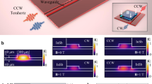Apart from ferrite and graphene, alternative materials have also been proposed to achieve efficient terahertz non-reciprocity, and several works have been recently published presenting experimental characterization of the properties of these materials. One example is given by other free carrier based materials such as doped silicon24. In addition, thin films of HgTe exhibit interesting non-reciprocal properties due to a combination of band structure effects and high mobility carriers25. Ferrofluids have also been considered, since they exhibit good transparency in the THz band26. Another promising example are multiferroic materials, which show strong non-reciprocity and unidirectional propagation at terahertz frequencies27,28. However, these materials have not been employed for the experimental demonstration of final isolator designs, and rarely the explored frequencies exceed 1.5 THz.