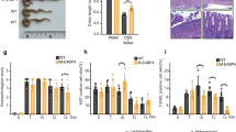 Induction of colitis resulted in increased disease severity in the Fndc4 KO mice, as shown by increased disease severity index (Fig. 8c), reduced colon length (Fig. 8d), increased body weight loss (Fig. 8e), increased histopathology scores (Fig. 8f,g) and increased proinflammatory gene expression (Fig. 8h).
