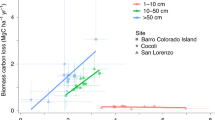 Although the allometric equation used here is known to overestimate aboveground biomass53, we make no between-site comparisons of aboveground biomass, and thus, do not expect our choice of equation to bias our results in any way.