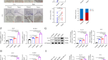 The whole-mount protocols in our laboratory were used25,51,52. Briefly, fresh tumour tissues were fixed with 4% PFA at 4 °C overnight and the fixed tissues were cut into small pieces and digested with proteinase K (20 mM) in a Tris buffer, permeabilized with 100% methanol, washed and blocked overnight with 3% milk in 0.3% Triton X-100 in PBS. Primary antibodies against Iba1 (rabbit, Cat. No. 019-19741, WAKO), F4/80 (Rat, Cat. No. MCA497G, AbD Serotec), F4/80 (Rabbit, Cat. No. NBP2-12506, Novus Biologicals) and Ki67 (Rat, Cat. No. 14-5698-82, eBioscience) were incubated overnight at 4 °C, followed by washing, blocking with 3% milk and incubation with fluorescent-conjugated secondary antibodies for 2 h at room temperature. Additional washing was performed before mounting. The stained tissues were mounted with Vectashield mounting medium (Cat. No. H-1000, Vector Laboratories). Fluorescent signals were examined with a confocal microscope (Zeiss LSM510 Confocal, or Nikon C1 Confocal microscope) and quantitative analysis was performed with a Photoshop (CS5) software.