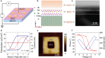 PFM loops versus voltage measurements (Figs 3a,b,e,f) were performed at room temperature using an atomic force microscope (Bruker Multimode 8, Camarillo, CA, USA). PFM images (Fig. 1) were performed combining a lock-in amplifier (Zurich HF2LI) to track the contact resonance of the AFM tip with a multimode Nanoscope V AFM (Bruker). In both cases, commercial silicon tips coated with chromium/platinum (Budget Sensors) were used for PFM at typical contact resonance frequencies of 0.4–0.7 MHz.