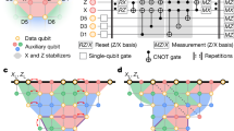 We remark that gauge defects can be incorrectly analysed during syndrome estimation. In which case, measurement errors sometimes masquerade as stabilizer defects and sometimes stabilizer defects can be misplaced. We will then attempt to decode the incorrect stabilizer syndrome and mistakenly introduce errors to the code. In general, any error-correction scheme that takes noisy measurement data will introduce residual physical errors to a code. These errors can be corrected in future cycles of error-correction, provided the remaining noise is of a form that a decoder can correct. In general, however, one must worry that large correlated errors can be introduced that adversarially corrupt encoded information45,46,47,48,49,50. Such errors may occur in the gauge color code if, for instance, we mistakenly predict two stabilizer defects of the same color that are separated by a large distance. We give an example of a mechanism that might cause a correlated error during syndrome estimation with the gauge color code in the Supplementary Note 3, together with Supplementary Fig. 8.