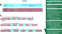 Single larvae in the swimming chamber were video-recorded for 120 s under infrared light and constant temperature. Next, they were presented with 1 ms lateral displacements of the silica capillary tube delivered at 1 Hz (input voltage: 0.5 V) for 120 s, as described elsewhere35. Motion before and during stimulation was calculated using the integrals of motion over 120 s.