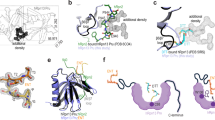 Superposition of Saccharomyces cerevisiae Ub-Rpn10 on the structure of Schizosaccharomyces pombe Rpn10 (ref. 19) yielded an r.m.s.d. value of 0.85 Å, suggesting that ubiquitylation did not induce significant conformational changes. The alignment shows that the two proteins present a highly conserved surface surrounding K84 (Fig. 1e; Supplementary Fig. 1). Interestingly, the structural comparison uncovered compensatory substitutions of R17/I17 and E82/R82 of the S. cerevisiae/S. pombe residues at the ubiquitylation site interface.
