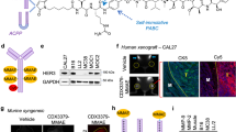 All cell lines used in these studies are summarized in Supplementary Table 1. Human HNC (CAL-27, SCC-25), NSCLC (A549, CALU3), colorectal (HCT-116), gastric (NCI N87), glioma (LN229) and breast (BT474) cancer cell lines were obtained from American Type Culture Collection. Human esophageal cancer line OE19 was obtained from Sigma-Aldrich. Human HNC SCC-35, SCC61 and SQ-9G was kindly provided from Ralph Weichselbaum, University of Chicago. CAL-27, A549 and HCT116, cells were cultured in DMEM supplemented with 10% FBS. SCC-61 was cultured in DMEM/F12 supplemented with 20% FBS and 400 ng ml−1 hydrocortisone. OE19 and NCI N87 cells were cultured in RPMI supplemented with 10% FBS. CALU3 cells were cultured in MEM supplemented with 10% FBS. On receipt, each cell line was expanded, cryopreserved as low passage stocks and routinely tested for mycoplasma. Cisplatin (Enzo Biosciences), paclitaxel (Sigma), MMAE (Concortis) and mertansine (Abcam) were reconstituted in DMSO. Clinical-grade erlotinib, lapatinib, cetuximab, trastuzumab, ado-trastuzumab emtansine (T-DM1) were obtained from UCSD Moores Cancer Center pharmacy.
