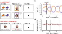 Whereas veridical feedback does not typically impact recognition criterion28,33, the biased feedback paradigm successfully drove changes in recognition decision criterion. Furthermore, the continuous confidence ratings and biased feedback protocol in the present experiment were designed to provide a wide range of PE values from trial to trial. Altogether, these features allow us to identify the neural correlates of PEs during memory decisions and link these neural PEs to behaviour.
