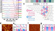 Single-chirality separation from each semiconducting nanotube fraction was performed using the SS-MUGEC method. Several 10-ml medical syringes, as described above, were connected vertically in series. Before separation, the SDS concentration in each semiconducting nanotube fraction was diluted to 2 wt%. After the gel columns were equilibrated with 2 wt% SDS solution, the diluted semiconducting fractions (5–10 ml, 16 μg ml−1) were applied to the top column, and a 2 wt% SDS aqueous solution was then added to the series of columns to elute the unbound nanotubes. The semiconducting nanotubes adsorbed in each column were collected by injecting a 5 wt% SDS solution. The second separated semiconducting nanotube fractions were characterized by optical adsorption spectra and PL contours (Figs 3 and 4; Supplementary Fig. S5), which confirmed that at least 13 different (n, m) species were isolated from the HiPco-grown SWCNTs.
