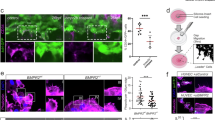 RNA was isolated from FACS-enriched zebrafish cells using RNA-easy Micro Plus kit (Qiagen) and reverse transcribed with Invitrogen’s Superscript III First-Strand Synthesis Supermix (Invitrogen) according to the manufacturer’s instructions. For qRT–PCR, NCBI’s Primer-BLAST was used to design exon-spanning, gene-specific SybrGreen primers (see Supplementary Table 3). All primers were validated by high-resolution melt analysis, size confirmation and no-template controls. SybrGreen real-time PCR was performed in triplicate on the Viia7 real-time PCR system (Invitrogen). For quantification, the ΔΔCT method was used where raw CT values were normalized to elongation factor alpha (eef1a1l1) and paired sorting control, then calculated fold change as 2(−ΔΔCT). Statistical significance was determined by one-sample T-test comparing with a reference value of onefold change.
