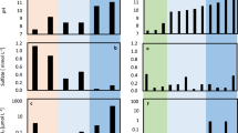 Further insight can be gained by mass balance modelling of the sulfate concentrations. Using geochemical and experimental data36, a rate of sulfate production from IROP in the Kidd Creek rocks can be estimated (see the ‘Methods’ section) to a first approximation at 1.7 × 10−5 μM per year to 4.9 × 10−4 μM per year (Supplementary Table 2). On the basis of the residence times for these waters3, the accumulated sulfate concentrations in the fracture waters from IROP would be 1.9 × 104 to 5.4 × 105 μM (for 1.1 billion years) or 4.4 × 104 to 1.3 × 106 μM (for the maximum residence time of 2.6 billion years estimated for these waters). Both estimates are orders of magnitude higher than the measured values of dissolved sulfate (97 to 376 μM), again suggesting that removal processes need to be examined to account for both the elevated δ34S values and lowered concentrations of dissolved sulfate observed in the fracture waters.
