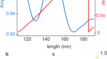 For the purposes of designing holographic surface structures, the distribution of electromagnetic field in the gold/vacuum interface plane resulting from free-electron injection are computed using the model of a fixed dipole above the surface21,22,23,24, via the finite element method (in COMSOL Multiphysics). We select a surface–dipole separation h=50 nm (λ/16) that is small enough to correctly reproduce the electron-induced fields (there is negligible variation in the transition radiation distribution among values of h<λ/8, that is <100 nm in the present case) whilst being larger than the local finite element mesh size (20 nm), so as to avoid anomalies in simulated electromagnetic field distributions. The gold and vacuum are assumed to be semi-infinite in the z-direction, with material parameters for gold taken from ref. 41.