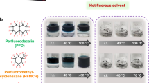 To check the miscibility and molecular surface free energies, the contact angles of chloroform solution of three materials were measured on ZnO/ITO and PEDOT/ITO substrates (Supplementary Fig. 3d,e). The increase of contact angles for the fluorinated molecules indicated fluorination lowered the surface free energies of small molecules. On the other hand, the increase of deviation in contact angles between fluorinated molecules and PC71BM indicated fluorination also reduced the miscibility of small molecules with PC71BM. These results implied that surface free energies and miscibility were successfully adjusted through molecular design.