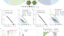 To better understand the nature of gene combinations, we analysed preferential gene pairing biases by comparing the expected versus observed frequency of pairwise gene combinations. The observed frequency of each gene combination is correlated to its expected frequency (Spearman r): V-D (0.74), V-J (0.87), D-J (0.93) and V-D-J (0.65) (Fig. 4a–d). This high level of correlation and lack of significant outliers suggests minimal gene pairing linkage and that gene pairing is a random process.