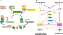 The detection was performed using a modified protocol as described70. About 0.2 g leaf samples were homogenized and added with 1 ml ethyl acetate. Following centrifugation at 13,000 r.p.m. (16,100g) for 10 min at 4 °C, the supernatant was transferred to a 2-ml tube; the precipitation was extracted with additional 1 ml ethyl acetate. The supernatants were combined and evaporated to dryness on a vacuum concentrator. Residue of each sample was resuspended in 200 μl of 70% methanol (v/v) and centrifuged, and the supernatant was used for JA and JA-Ile detection.