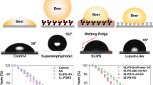Pillar-structured silicon substrates were prepared as previously reported40. Silicon wafers (10 cm diameter, N doped, <100> oriented, 525 μm thick) were structured by direct a laser writing apparatus (DWL200, Heidelberg Instruments Mikrotechnik, Germany) that transferred the computer-predefined design onto the wafer coated with photoresist (Shipley Microposit S1800 series) with ∼1 μm precision. After irradiation and development, the wafers were etched using deep reactive ion etching (DRIE, Alcatel 601E) with fluorine-based reagents, for different times (10 s to 6 min) depending on the desired height of the structures. Micropillar-structured silicon substrates with tunable arrangements of pillars and pillar intervals were fabricated. After resist stripping (Shipley Microposit Remover 1,165), the substrates were cleaned with ethanol and acetone. To increase the wettability of the surface, the substrates were treated with an air-plasma generator (DT-02S, Ops plasma technology Co., Ltd.) at 200 W for 180 s.