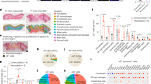 Following informed written consent, human dermal fibroblasts were isolated from skin biopsy of a patient undergoing plastic surgery (abdominoplasty, sex and health status are unknown). This procedure was performed under ethical approval of the East London Research Ethics Committee. Fibroblasts were then embedded in 4 mg ml−1 collagen 1 matrices at a concentration of 250,000 cells per ml, to produce dermal equivalents. After culturing these dermal equivalents for 24 h, keratinocytes were seeded on top (30,000 cells per cm2) and kept in submerged culture for a further 24 h. Afterwards, the human skin equivalents were lifted to the air–liquid interface and cultured until day 14 with alternate daily media change, before being PFA-fixed and paraffin-embedded for processing.