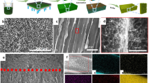 Typically, sulfur CS2 solution (5 mg ml−1) was first prepared by dissolving sublimed sulfur in CS2 solvent under stirring at room temperature. The obtained solution was dropped into the MOFs/CNT substrates and slowly dried at 40 °C. The sulfur contained film was further dried under vacuum at 60 °C for 8 h and subsequently annealed at 140 °C for 8 h under Ar atmosphere and cooled to room temperature to obtain the S@HKUST-1/CNT, S@MOF-5/CNT and S@ZIF-8/CNT electrodes, respectively. The sulfur loading amount was controlled by the dropping volume of sulfur solution, and obtained by weighting MOFs/CNT thin films before and after loading sulfur. The areal sulfur loading was controlled by the thickness of the MOFs/CNT films and the dropped volume of the sulfur CS2 solution. Typically, the areal loading amount of sulfur for coin cells was about 1 mg cm−2 for a 22.5 μm thick film, which is common loading used for cycling performance29,30,31,45,57,58,59,60,61,62. The sulfur content in electrodes for coin cells is ∼40 wt%, which is a common value for MOFs-based sulfur electrodes16,18,19. However, the sulfur contents as high as ∼70 wt% (with the content of CNT ∼12%), were also achieved for electrodes in soft package cells, as shown in Supplementary Table 5. For comparison, sulfur electrodes containing HKUST-1 and/or CNT were also prepared through the conventional slurry-casting process. Slurry containing 40 wt% sulfur and 10 wt% PVDF with 30 wt% HKUST-1+20 wt% Super P (S@HKUST-1), or 50 wt% CNT (S@CNT), or 30 wt% HKUST-1+20 wt% CNT (S@HKUST-1+CNT) was prepared in N-methyl-2-pyrrolidone (NMP) solvent, casted on the Al foil and vacuum dried at 60 °C for 12 h. In electrode with thickness of 22.5 μm and sulfur loading of 1 mg cm−2, the micropores are not fully filled when the sulfur content is about 40 wt%. To achieve higher sulfur content and electrode capacity in Li–S soft package configuration, we only raised the electrode thickness from 22.5 to 30 μm when sulfur loading increased from 1 to 4.57 mg cm−2, thus the sulfur content was increased from 40 to 70 wt%. However, in attempt for even higher sulfur loading and areal capacity, we increased the electrode thickness from 30.4 to 44.6, 64.7, and 80.0 μm along with the increase of areal sulfur loading from 4.57 to 6.67, 9.33, and 11.33 mg cm−2, but maintained the sulfur content to ∼70 wt% for decent conductivity and sulfur confinement. The resultant volumetric sulfur loading was 1.52, 1.48, 1.43 and 1.41 g cm−3, respectively. Summarized information is shown in Supplementary Table 5.