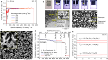 The liquid electrode incorporated in the rechargeable battery has to be separated from the other electrode by a solid electrolyte. The wettability of this liquid electrode with the well-known Na-β″-Al2O3 solid electrolyte (BASE) was also checked. It can be seen that the Na-BP-DME liquid spreads over the entire surface of BASE at room temperature, suggesting a complete wetting of the surface with a contact angle of ∼0° (Fig. 1d and Supplementary Videos 1 and 2). This wettability is much superior to that of any other alkali metals or their alloys, even at a temperature as high as 200 °C (ref. 9). The superior stability of BASE in the Na-BP-DME solution was confirmed by the X-ray diffraction analysis (Supplementary Fig. 3).