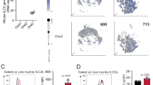 Cells isolated from spleen, LNs and LP were washed in cold PBS containing 0.1% BSA and unspecific binding was blocked using anti-FcγRII/FcγRIII (2.4G2; eBioscience). Staining of surface molecules with fluorescently labelled antibodies was performed at 4 °C for 30 min in the dark. Intracellular cytokine (IC) staining was performed using the IC Staining Buffer Kit (eBioscience; cat. no. 00-8222-49) according to the manufacturer’s instructions. Surface expression of human ORAI1 in fibroblasts was detected using two different custom-made anti-human ORAI1 monoclonal antibodies, which both recognize the second extracellular loop of hORAI1. Clone 29A2 is a mouse anti-human ORAI1 mAb (IgG1) that was generated with an ovalbumin conjugated peptide corresponding to amino acids 196 to 234 of human ORA1 using mice that overexpress the neonatal Fc receptor (FcRn) and have augmented immune response due to the role of FcRn in antigen presentation62. Immune sera and hybridoma supernatants were tested using human ORAI1 transfected and parenteral NIH-3T3 cells with flow cytometry analyses. A mouse IgG1 Ab was used as isotype control and a goat anti-mouse IgG conjugated to AlexaFluor 647 (Life technologies) as secondary antibody for detection. Clone 2C1.1 is a fully human anti-ORAI1 monoclonal antibody conjugated to allophycocyanin (APC) as described in ref. 57. A complete list of antibodies with the respective conjugated fluorochromes can be found in Supplementary Table 1. Samples were acquired on an LSRII flow cytometer using FACSDiva Software (BD Biosciences) and further analysed with FlowJo Software (Tree Star). Sorting of various cell populations by flow cytometry was performed using a sterile Sony SY3200 (HAPS1) cell sorter. For detection of β-galactosidase activity in lacZ (Orai2 reporter) positive cells, cells were loaded with 2 mM of the green fluorogenic substrate fluorescein di-V-galactoside (FDG) (Sigma; cat. no. F2756) in Hank’s balanced salt solution containing 2% FBS, 10 mM HEPES (pH 7.2) according to the manufacturer’s instructions. After loading, cells were incubated for 1.5 h on ice, washed once and further stained with flow cytometry antibodies. Representative gating strategies for all experiments can be found in Supplementary Fig. 9.