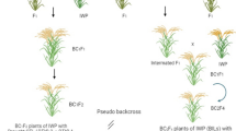 For QTL detection, 190 plants of F2 population derived from YYP1 and NIP were first genotyped by 145 genome-wide polymorphic markers and linkage analysis was performed by composite interval mapping module of the software WinQTLCart 2.5. Linkage analysis of two BC2F2 populations with 185 and 166 plants were then performed by single maker analysis module. Progenies of eight BC2F2 recombinants were planted to clarify the mapping region with valid phenotype. A larger BC3F2 population with 3,404 plants was genotyped using the markers RM23399 and RM23426 to find additional recombinants, and more markers were developed to discriminate the recombination sites (Supplementary Table 5). Using tightly linked marker, BC3F3 progeny of key recombinants were genotyped to select BC3F4 homozygous sibling plants, and traits of both generations were analysed to validate the phenotype. The SNP markers flanking mapping region were also used to genotype different IPA varieties to obtain their SNP haplotypes.