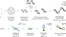 Samples for DNA accessibility mapping were prepared in the same way as BLISS samples, except that the in situ DSBs blunting step was substituted by an in situ DNA digestion step using 1 U μl–1 of HindIII endonuclease (NEB, catalogue number R3104) and incubating the samples for 18 h at 37 °C. HindIII cut sites were ligated with modified BLISS adapters carrying the HindIII complementary sticky end (see Supplementary Fig. 4h). To prevent in situ re-ligation of HindIII cut sites, the samples were incubated for 2 h at 37 °C in the presence of 0.015 U μl–1 of calf intestinal alkaline phosphatase (Promega, catalogue number M2825) before in situ ligation.