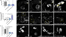 Drosophila stocks were maintained by standard methods at 25 °C. For experiments using Gal80ts, flies were raised at 18 °C and then shifted to the restrictive temperature (29 °C) at 3–5 days after eclosion. For generation of mosaic mutant clones, 3—5-day-old flies were heat shocked once for 30 min at 37 °C. For generation of UAS-transgene overexpression clones, adult flies were shifted at 29 °C for various times. To control the timing of UAS-transgene overexpression with the esg Flip/Out system, we shifted 3–5-day-old female flies to 29 °C to generate flip-out clones, and 1 day after clone induction we fed them P.e. bacteria dissolved in a 5% sucrose solution. To overexpress RasV12S35 in InR−/−, Pi3K−/− or TOR−/− cells, we used the MARCM system60.