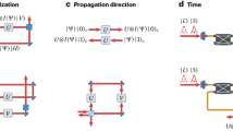 To realize our example of COH (Fig. 4d), the partial swap in equation (2) is implemented using linear optics23. Here we significantly improve the stability of the experimental concept of ref. 23 by incorporating the working principle around a displaced Sagnac interferometer. The other three examples from Fig. 4 are obtained by variations on this set-up. Delaying the photon in mode E relative to the one in mode D prevents two-photon interference at the first beam splitter of the Sagnac interferometer, so that the interferometer implements a probabilistic mixture of identity and swap operations (our example of PROBQ, Fig. 4c). This latter circuit realizes the same causal map implemented in ref. 3, which focused on the task of resolving probabilistic mixtures of cause-effect and common-cause relations. However, the experimental set-up of ref. 3 could not realize physical mixtures, which are required to address the broader question, investigated in the present work, of how these two extremes may be combined in general.