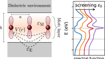 To understand these experimental findings more intuitively, we recall that although the excitons are confined to the WS2 layer, the electric field between the constituent electrons and holes permeates both the material and the local surroundings (Fig. 1a). In particular, the screening for larger electron–hole separations is increasingly dominated by the dielectric properties of the environment. Therefore, the strength of the Coulomb interaction is reduced by the addition of graphene layers on top of WS2, leading to a decrease in both the exciton binding energy and the bandgap.