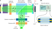 We fabricated a microwave device composed of a Ba2Mg2Fe12O22 sample and a microwave coplanar waveguide shown in Fig. 1c in order to measure the microwave response after the electric poling procedure. The dimensions of the sample were 1.1 mm × 1.1 mm × 0.3 mm. The largest plane was perpendicular to the [10] direction, and the two longer sides were parallel to the [110] and [001] directions. The aluminium electrodes were attached to the largest sample planes for applying the electric field. The coplanar waveguide was designed so that the characteristic impedance matched 50 Ω. The width of the strip line was 0.2 mm, and the gap between the strip line and the ground plane was 0.05 mm. The sample was placed on the coplanar waveguide so that the [001] direction was parallel to the wave guide. A Teflon sheet with a thickness of 20 μm was inserted between the sample and the waveguide for insulation. The microwave response was measured in a superconducting magnet using a vector network analyser (E5071C, Agilent). Before the microwave measurement, we performed a poling procedure similar to that used previously for the polarization measurement. For the measurements in negative magnetic fields, the magnetic field during the poling was also negative. The microwave absorption spectrum ΔS12 at μ0H is defined as |S12(5 T)|−|S12(μ0H)|, where S12 is the microwave transmittance from port 2 to port 1. Because the magnetic resonance frequency was high enough in the entire measurement range at 5 T, the microwave absorption owing to magnetic resonance can be obtained using this formula. The microwave absorption with the opposite wave vector ΔS21 was also obtained by a similar procedure.
