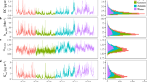 A modified single-particle soot photometer (SP2), which detects light-absorbing refractory aerosols on the basis of intra-cavity laser-induced incandescence, was used to measure BC and iron oxide FeOx particles25. The BC and FeOx are discriminated from each other on the basis of the colour ratio, which is an indicator of the boiling temperature25, and the peak amplitude of the blue-band incandescence signal, which is an indicator of an incandescing particle’s size25. Supplementary Figure 7 shows a scatterplot of the peak amplitudes and colour ratios of all incandescing particles detected during the A-FORCE 2013 W campaign. The boundary lines for discriminating FeOx from BC were determined on the basis of experimental results25 and are also shown in Supplementary Fig. 7.