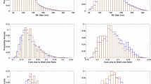 The masses (m) of the individual FeOx and BC particles were determined from the peak heights of the incandescence signals using the experimentally determined mass-to-peak height relationships25. The mass-equivalent diameters (Dm) for BC and FeOx were calculated from the observed masses m assuming the void-free densities of 1.8 g cm−3 and 5.17 g cm−3 (density of magnetite), respectively. In this study, the detectable size domains of the BC and FeOx particles were 70 nm≤Dm≤850 nm and 170 nm≤Dm≤2100, nm, respectively.