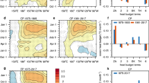Taken together, our results suggest that anthropogenic climate change has had a profound effect on SSTs in the CP, whereby anomalous warming over the last decades is accompanied by an increase in interannual variance. NIÑO4 SST values over the last two decades are likely higher than natural variations over the last 818 years, owing to a combination of relatively high CP ENSO activity and a late 20th century warming trend. In light of our results, it seems plausible that the dominance of CP ENSO extremes in the first two decades of the twenty-first century may continue, albeit with some important caveats. First, the global climate impacts of future CP ENSO extremes will critically depend on the evolution of the mean climate state in the tropical Pacific36,37, which itself is poorly constrained at present. Second, the new Taiwan tree δ18O record is the newest addition to growing archive of high-resolution paleo-data sets that can be used to probe the sensitivity of tropical Pacific climate to a variety of external climatic forcings over the recent past. One such example comes from the early- to mid-Holocene, when some models and data suggest that processional insolation forcing may have driven a shift towards greater CP ENSO activity and less East Pacific ENSO activity37. Should the dominance of CP ENSO extremes continue in the coming decades, investigations of the causes, and consequences, of any past shifts towards CP ENSO may provide some clues about future tropical Pacific climate trends and their global impacts.