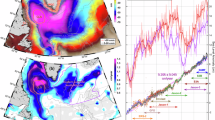Historical ice coverage data from northern Canada was obtained from the Canadian Ice Service, Environment Canada (https://www.ec.gc.ca/glaces-ice/). Percentage ice cover data in the northern Canadian waters region was obtained from IceGraph Tool 2.0 for the months exhibiting the minimum sea-ice cover (August to October) from 1971 to 2009 (ref. 64). The data from the IceGraph Tool 2.0 are derived from weekly regional ice charts from predefined regions (based on the compilation analysis of satellite imagery, weather and oceanographic information, and observations from ships and aircrafts), and is calculated by multiplying the percentage of sea area in a specified region that is covered by ice, by the concentration of ice. Chlorophyll α concentrations (mg m−3) for the years 1998–2009 were determined from Level 3 (monthly, 9 km resolution) Sea-Viewing Wide Field-of-View Sensor (SeaWiFS) ocean colour data obtained using the Giovanni online data system, developed and maintained by the NASA Goddard Earth Sciences Data and Information Services Center (GES DISC; http://gdata1.sci.gsfc.nasa.gov/daac-bin/G3/gui.cgi?instance_id=ocean_month). Fram Strait sea-ice export data were obtained from a reconstruction based on historical observations of multiyear ice called ‘Storis’ from ship logbooks and ice charts off the southwestern coast of Greenland46. Since summer months contain the most data coverage, summer storis observations extracted from historical records were used to create the storis extent index46 (May to July; 1820–2000). Although the Fram Strait sea-ice export record dates back to the early 1800s, decadal-scale relationships to algal Ba/Ca (based on 10-year running means) were only examined for the period from 1870 to 2009 due to the gap in LA-ICP-MS analysis of the algal Ba/Ca record. Similarly, correlation coefficients between δ13C and Ba/Ca ratios were only determined for the post-gap period until 1960, when the Suess effect resulted in a significant anthropogenic overprinting of the δ13C signal.