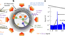 The simulated plasma areal density along the ion trajectory , with ρ being the mass density, is benchmarked against previous energy-loss measurements for fast ions with known stopping power11 (Fig. 2d). The areal density remains constant for 0–7 ns due to one-dimensional (1D) plasma expansion and later decreases with the three-dimensional (3D) expansion, reducing the energy loss. The good overall agreement of the experimental data with all stopping predictions validates the simulated time evolution of the important areal density.