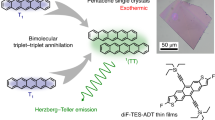 F2-TES ADT was synthesized as described previously68. PC71BM, tetracene, rubrene, TIPS-pentacene and pentacene were purchased from Sigma Aldrich. F2-TES ADT and TIPS-pentacene thin film samples were spin-cast (15 mg ml−1, toluene) on polyimide precoated fused-silica substrates (the polyimide aids wetting of the organic semiconductor). For F2-TES ADT: PC71BM thin film samples, 4:1F2-TES ADT:PC71BM blend solutions (15 mg ml−1 total material, mesitylene) were spin-cast on polyimide precoated fused-silica substrates. Samples were dried on a hot-plate at 50 °C for 10 min. Tetracene, rubrene and pentacene thin-film samples were prepared via thermal evaporation at a base pressure of <6 × 10−6 mbar.