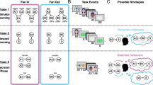 To aid memory, participants were offered a mnemonic strategy. Specifically, they were told that the photographs could be treated as tickets, which could be placed in one of four imaginary ‘pockets’: left or right, depending on the slot machine, and front or back, depending on the dollar value. During practice, the keypresses required to advance each trial were instructed in the context of this mnemonic strategy (for example, ‘Press ‘a’ to put the ticket in your left hand, now press ‘a’ again to put the ticket in your front pocket.’). Participants completed two practice trials before beginning the main experiment.