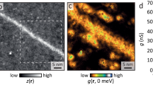 We used a low-temperature STM connected with a PLD chamber. This system enables us to investigate thin film surfaces immediately after their deposition, without exposing surfaces to air. The base pressure of the PLD chamber was 5 × 10−11 Torr. Thin films of LiTi2O4 are grown on Nb(0.05 wt %)-doped SrTiO3(111) substrate using PLD with a KrF excimer laser (wavelength λ=248 nm). We used Li4Ti5O12 target for PLD film growth to compensate the Li loss during depositions. Substrates were annealed at 1,000 °C for an hour in oxygen under a partial pressure PO2=5 × 10−7 Torr before film depositions. Substrates were resistively heated, and their temperatures were monitored using a pyrometer. We deposited film at a substrate temperature Ts=300 °C under PO2=5 × 10−7 Torr followed by post-deposition annealing at 600 °C in ultrahigh vacuum for one hour. During thin film depositions, pulse repetition and fluence were set at 2 Hz and 1 J cm−2, respectively. Film thickness, measured ex situ using a DEKTAK 3030ST mechanical profiler, was determined to be about 100 nm. The STM data shown in Fig. 1a-c were taken at liquid-nitrogen temperature (77 K). The rest of STM data were taken at liquid-helium temperature (4.2 K). We obtained differential conductance values (dI/dV) from the numerical derivatives of I (tunnelling current) − V (voltage) curves. For ex situ characterization, we measured X-ray diffraction pattern and temperature dependence of magnetization after in situ STM/STS measurements.