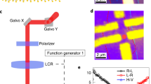 Optical contrast and micro-PL are performed in a backscattering geometry using a Jobin-Yvon HR800 Raman system equipped with a liquid-nitrogen-cooled charge-coupled detector. The optical excitation wavelength is 633 nm from a HeNe laser. The laser beam passes through a Soleil Babinet Compensator to generate a circularly polarized light. The polarization is set to σ+, and the PL polarization σ+ or σ− is analysed by a quarter-wave plate placed in front of a fixed Glan–Thomson linear polarizer. The whole set-up provides a rejection ratio better than 5% in σ+ and σ− configuration over the spectral range of interest. The excitation power of 50 μW is used to avoid sample heating. We use a normal ×100 objective with numerical aperture =0.90 for optical contrast and PL measurement at room temperature (Fig. 3c). A long-working-distance ×50 objective is used for PL measurement at low temperature (Fig. 3d). The sample temperature was controlled by a programmable hot stage THMS600 from Linkam Scientific Instruments.