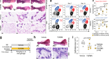 To investigate the effect of TGFβ on the self-renewal properties of TICs, we transplanted M1 single-cell suspensions from ER− cell lines prototypic of the opposing effects of TGFβ on MS-IC self-renewal (HCC1954-basal and MDA-MB-231-claudinlow) at limiting dilutions into the mammary fat pads of NSG mice (Fig. 1a). In HCC1954 M1 cultures, TGFβ mediated a fourfold decrease in the total number of TICs (Fig. 1c; Table 1). In contrast, in MDA-MB-231 M1 cultures TGFβ induced a fivefold increase in the absolute number of TICs (Fig. 1c; Table 1).
