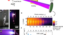 After the DPM system, the p-polarized laser beam was focused on the target using an OAP mirror (f=25 cm) at an incident angle of 45° (see Supplementary Fig. S7b). The final laser pulse energy on the target was 2 J without the DPM system and 1 J with the DPM system. HOH spectra were then observed using a flat-field XUV spectrometer installed along the optical axis of the beam reflected from the solid target. The spectrometer consisted of a gold-coated toroidal mirror, a 1,200 lines per mm grating (Hitachi), X-ray filters and a back-illuminated X-ray CCD (Princeton Instruments, PI-SX:2K). The spectrometer was calibrated with an aluminium (Al) L-edge (17.1 nm), and its second order (34.2 nm) observed from the atomic emission lines (see Supplementary Fig. S8). Polished SiO2 was chosen as the solid target for HOH generation, and the surface roughness of the target was a few nanometer (less than 10 nm) in root-mean-square value.