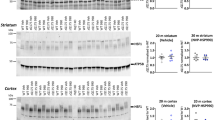 Mouse tissues were homogenized in buffer containing 50 mM Tris–HCl (pH 8.0), 150 mM NaCl, 1% Nonidet P-40, 0.5% deoxycholate, 0.1% SDS and 1 mM 2-mercaptoethanol with 1 mM phenylmethylsulphonyl fluoride and 6 μg ml−1 aprotinin and then centrifuged at 2,500 g for 15 min. Equal amounts of protein were separated by 5–20% SDS/PAGE and transferred to Hybond-P membranes (GE Healthcare, Piscataway, NJ, USA). The primary antibodies and their dilutions were as follows: AR (N20, 1:1,000; Santa Cruz Biotechnology, Santa Cruz, CA, USA), Hsp72 (1:1,000; Stressgen Biotechnologies, Victoria, Canada), Hsp40 (1:5,000; Stressgen), Hsp90 (1:1,000; Stressgen), Hsp105 (1:250; Novocastra Laboratories, Newcastle, UK), Hsf-1 (1:5,000; Stressgen), ChAT (1:1,000; Millipore, Billerica, MA, USA), NF-YA (G-2, 1:500; Santa Cruz Biotechnology), SP1 (PEP2, 1:2,000; Santa Cruz Biotechnology), TBP (N-12, 1:500; Santa Cruz Biotechnology) and p53 (DO-1, 1:500, Santa Cruz Biotechnology). Primary antibody binding was probed with horseradish peroxidase-conjugated secondary antibodies at a dilution of 1:5,000, and bands were detected by using an immunoreaction-enhancing solution (Can Get Signal; Toyobo, Osaka, Japan) and enhanced chemiluminescence (ECL Plus; GE Healthcare). An LAS-3000 imaging system (Fujifilm, Tokyo, Japan) was used to produce digital images. The signal intensities of these independent blots were quantified using IMAGE GAUGE software version 4.22 (Fuji) and expressed in arbitrary units. The membranes were reprobed with an anti-GAPDH (1:5,000; Santa Cruz Biotechnology) antibody for normalization.