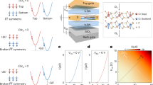 In order to extract which transport features are the key ingredients for the high-efficiency spin-polarization in our proposed device, it is instructive to consider a simple transport arrangement that bisects a long strip of silicene (with zigzag edges) into two halves as shown in Fig. 3a. We now apply out-of-plane electric fields E1 and E2 to the left and right regions, respectively. For simplicity, we assume the Zeeman field h=0 hereafter. The robust helical edge states (which cross from the conduction band to the valence band in the QSH phase as Ei<Ec) may or may not be present depending on the strength of the fields. Let us examine the case, 0<Ec<E1 with E2=−E1 (see Fig. 3b). Making E2 negative but still equal to E1 does not change the energy dispersion, but switches the spin configurations around the two valleys. Our calculation of the conductance and spin-polarization (see Supplementary Table S1) indicates that for one specific spin-polarization (for example, up-spin), intervalley scattering is still partially allowed, although with serious suppression of the total conductance. But, spin-flip scattering becomes entirely forbidden. This is in sharp contrast to the classic example of the valley filter in graphene where valley index is preserved during the scattering process due to special features of the well-known single-valley edge mode23,33,34. Remarkably, in our proposed spin-filter the bulk transport from the coupled valley and spin degrees of freedom is the key instead of the edge states. In other words, bulk states with non-spin-flip scattering processes are the crucial ingredients for the high-efficiency spin-polarization in our case.