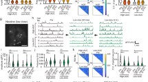 Whole-cell recordings were made from KCs in acutely isolated honeybee brain. KC somata are easily identified as the numerous, tightly packed cells, with a diameter of 5–10 μm within the mushroom body calyces (Fig. 1a)23. The identity of the recorded neurons was confirmed by measuring their passive and active membrane properties. KCs in intact honeybee brain have a membrane capacitance (CM) of 3.6±0.2 pF and input resistance (RI) of 2.8±0.2 GΩ (n=183), similar to that of cultured honeybee KCs24 and to morphologically identified KCs in the intact cockroach brain25. Depolarizing voltage steps evoke membrane currents (IM) that display time- and voltage-dependent characteristics of voltage-gated Na+ channels and A-type, delayed rectifier and Ca2+-activated K+ channels, as observed in cultured KCs (Fig. 1c)26,27,28,29. Under current clamp, resting membrane potential (VM) is −62±1 mV (n=22). Current injection evokes action potential (AP) firing that exhibits strong adaptation in frequency (Fig. 1d). This AP frequency adaptation is largely absent from cultured honeybee KCs29 but is similarly pronounced in KCs in intact cockroach brain25, reinforcing the importance of studying intact tissue.