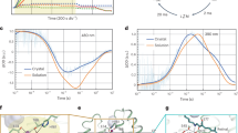 For ATR-FTIR measurement, KR2 was reconstituted into 1,2-dioleoyl-sn-glycero-3-phosphocholine (DOPC; molar ratio was KR2:DOPC=1:20). The sample was placed on the surface of a diamond ATR crystal (nine internal total reflections). After being dried in a gentle stream of N2, the sample was rehydrated with first solvent containing 50 mM NaCl, 5 mM Tris–HCl (pH 8.0) at a flow rate of 0.5 ml min−1. ATR-FTIR spectra was recorded at 2 cm−1 resolution with an FTIR spectrometer (Agilent, CA, USA) equipped with a liquid nitrogen-cooled MCT detector31. After exchanging to second solvent and recording FTIR spectrum, the difference FTIR spectrum was calculated by the subtraction between the data obtained for first and second solvents.