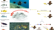 Groupers regularly hunt collaboratively with other fish species, in particular the giant moray eel Gymnothorax javanicus (hereafter ‘moray'), and also the Napoleon wrasse Cheilinus undulatus (hereafter ‘wrasse')19. Partner species benefit from hunting together because of their naturally complementary hunting tactics. The grouper possesses burst speed to capture prey in open water, while morays and wrasses may access prey hiding in reef cracks and crevices. Morays may physically move inside crevices because of their slender body, while wrasses have powerful protractile jaws that can suck out hidden prey or smash the reef matrix around it. When two predators with complementary hunting techniques hunt simultaneously, they may increase their hunting success rate19.