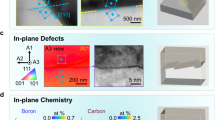 The MD simulations were performed in the canonical (NVT) ensemble with a Nosé–Hoover thermostat implemented in the ITAP molecular dynamics program31. The two symmetrical tilt GBs, Σ5(310)[001] and Σ5(210)[001], were created by joining two crystals rotated relative to each other around the [001] direction by the angle of 36.87° and 53.13°, respectively. The [001] tilt axis of the GB was aligned parallel to the x direction with the GB normal parallel to the y direction (Supplementary Fig. S3). The system typically contained 150,000 to 250,000 atoms. Smaller blocks, containing about 50,000 atoms with periodic boundary conditions parallel to the GB plane, were used to compute the GB thickness, observe the GB pre-melting and simulate the GB transformations induced by vacancies and interstitials. In the simulations involving large blocks, the periodic boundary condition was kept in the x direction, whereas in the z direction the GB terminated at an open surface on one side and at a layer of fixed atoms on the other side. In some simulations, the GB terminated at open surfaces on both sides.