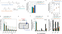 Dried extracts were dissolved in water and separation of compounds was achieved by HPLC using an Agilent (C8) 2.6 × 250 mm, 5 μmol l−1 particle column (Agilent Technologies). The HPLC method was adapted from a published method37 and verified. Mobile phase flow rate was 1 ml min−1. Eluent A (50 mmol l−1 potassium phosphate dibasic and 8 mmol l−1 tetrabutylammonium bisulphate aqueous adjusted to pH 5.8) and eluent B (50 mmol l−1 potassium phosphate dibasic and 8 mmol l−1 tetrabutylammonium bisulphate aqueous solution adjusted to pH 5.8 with 40% acetonitrile) were applied with a time-dependent gradient. Absorbance of NAD was detected at 254 nm wavelength and NADH was detected at 254 nm and 340 nm. The method was verified with calibration curves, which are depicted in Supplementary Fig. S8. Error bars are from biological replicates.