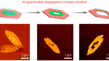 In this present work, nanoparticles with hybrid discoid morphologies have been constructed with mixed block copolymers assembled through kinetic control in solution. Rather than closing into vesicles, disks28,29 are flat bilayer sheets that are restricted to finite size. Due to inherent geometrical anisotropy, discoid structures exhibit notable shear field-responsive capabilities for prolonged discoid particle blood circulation time30, are used for membrane protein structure determination via1H NMR spectroscopy31, are used as templates for drug delivery32 and for porous material construction33. The difficulty in bilayer disk assembly is that the rim around the edge of a discrete disk is a high energy defect; to avoid the exposure of hydrophobic block to the aqueous medium, the molecules around the edge may rearrange to adopt a much higher curvature, as opposed to the flat interfacial curvature that the molecules favour throughout the interior of the nanoparticle34 (Supplementary Fig. S1). An approach to form disk structures is to cut vesicles into disks through blending with other block copolymer molecules that prefer to adopt a higher interfacial curvature after assembly in order to stabilize a disk edge. One successful small molecule example of this blending strategy is the formation of discoid bicelles through the mixing of long-chain phospholipids that form planar bilayers surrounded by short-chain lipids on the edge that shield the long-chain lipid-tails from water35. With proper design of block components and lengths, macromolecular block copolymers exhibit diverse morphologies at the same solution condition, that is, vesicle, cylinder or sphere, where molecules express increasing interfacial curvature, respectively (Fig. 1). Therefore, new, multigeometry disk nanoparticles were achievable from solution co-assembly of a bilayer-forming block copolymer and a cylinder-forming or sphere-forming block copolymer, respectively.